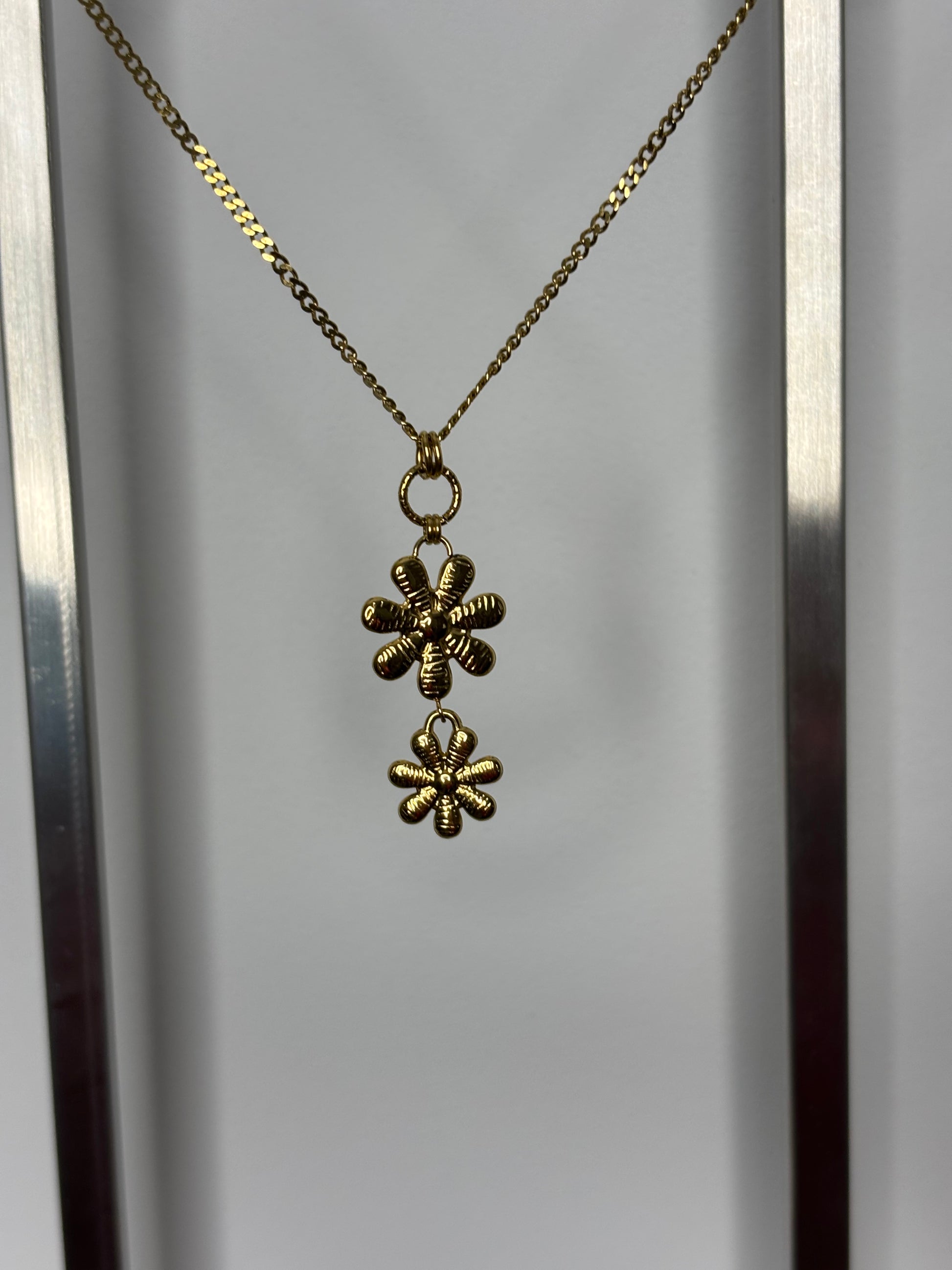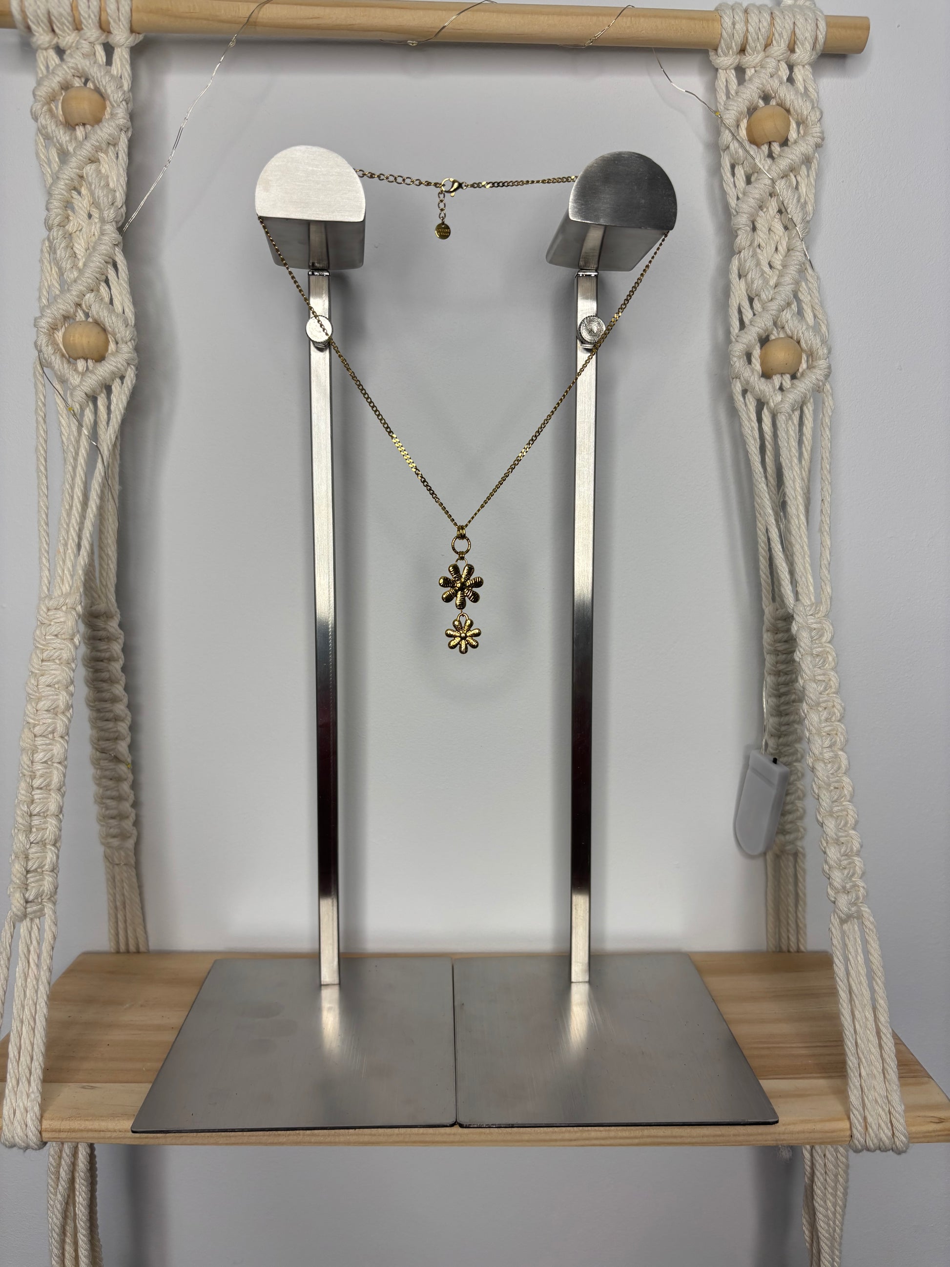 Collier en acier doré inoxydable avec 2 marguerites en pendentif, réglable.