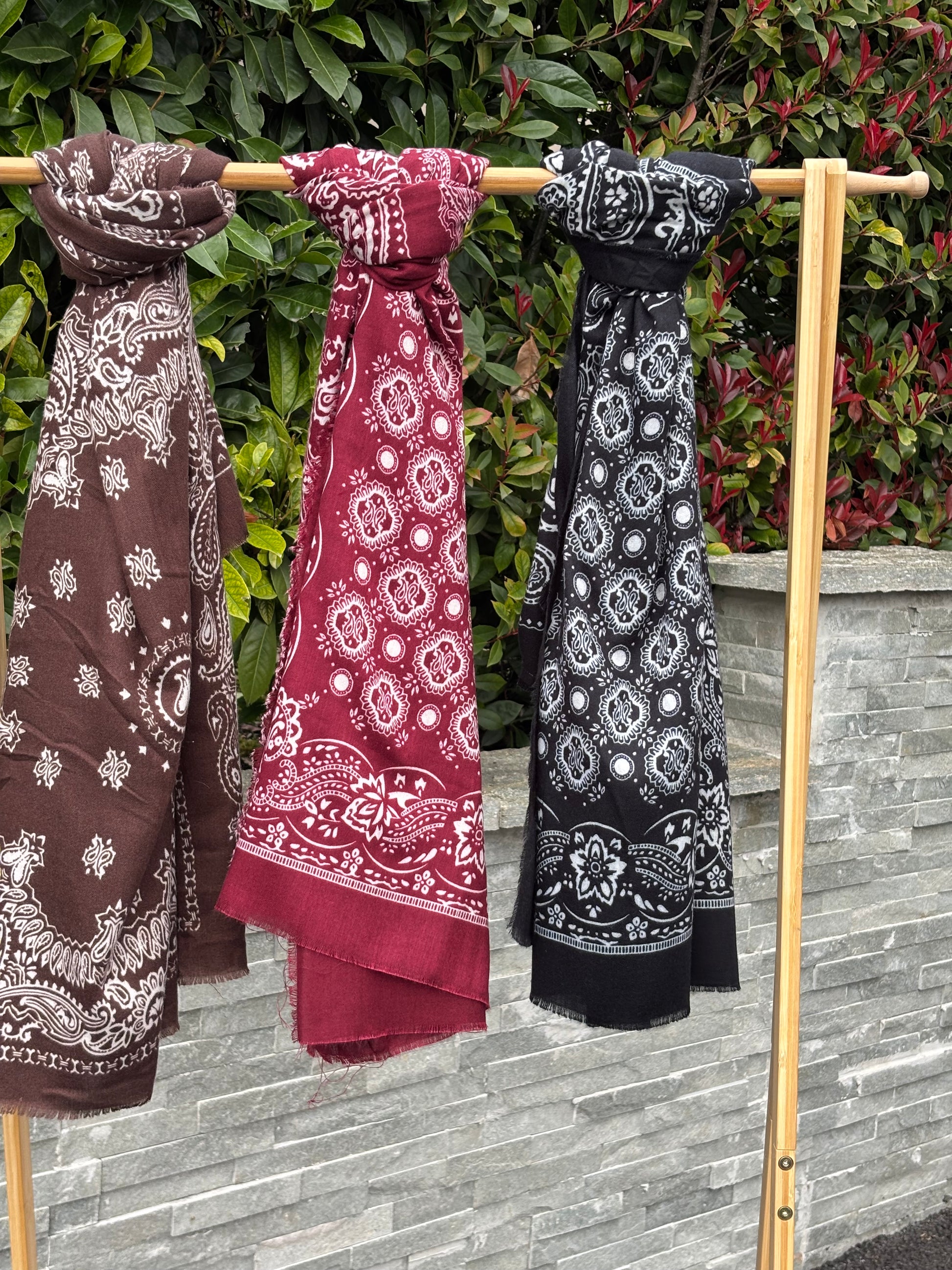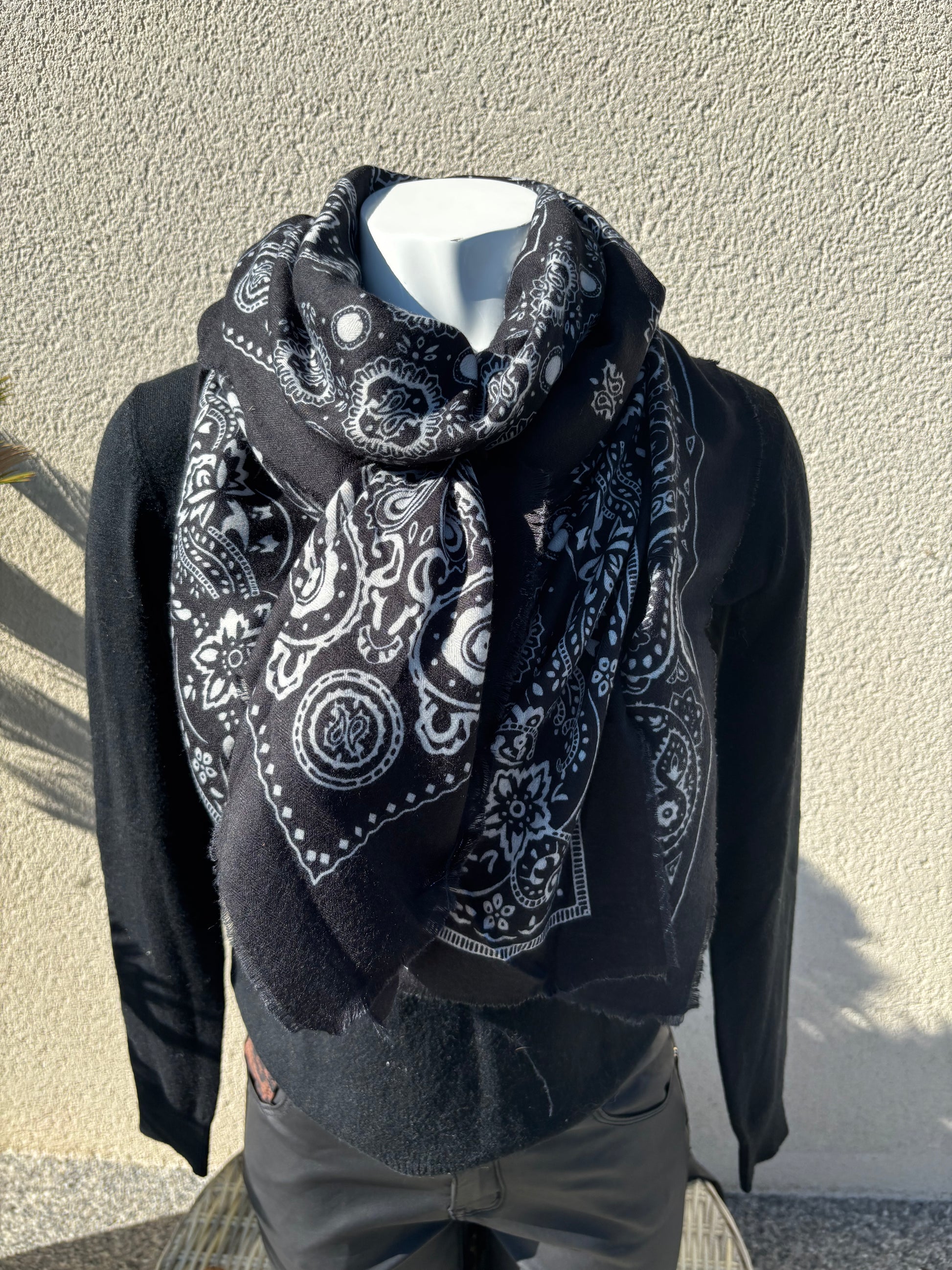 Echarpe ultra douce, chaude avec motif bandana. Existe en 3 coloris.