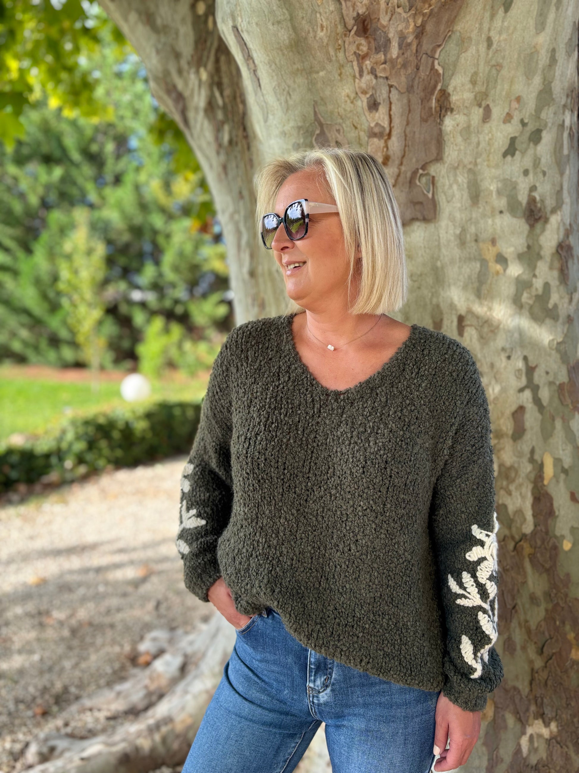 PULL AVEC BRODERIE KAKI