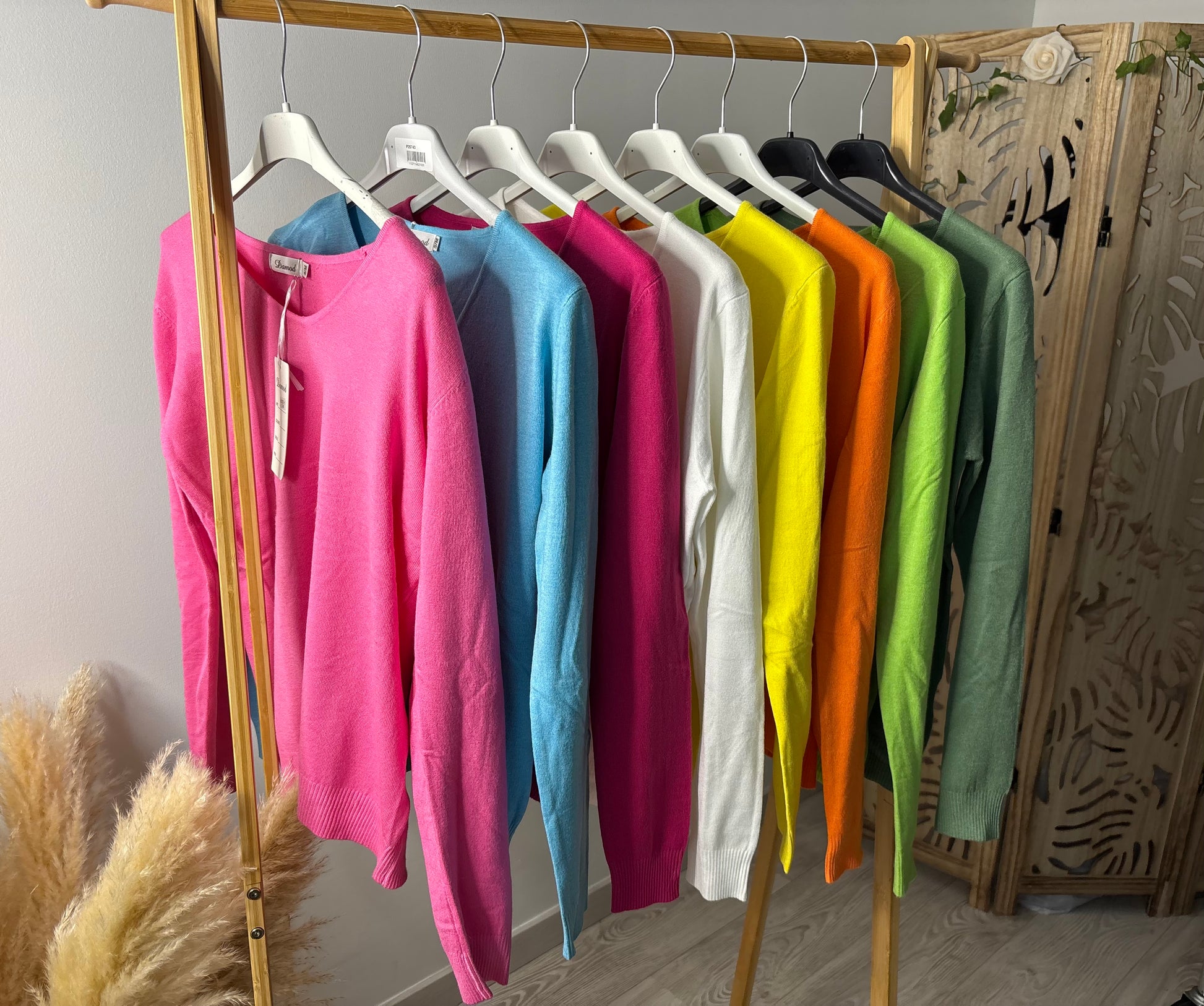 Pull Damod cintré, col V, existe en plusieurs coloris. Existe en taille S/M et L/XL. Le S/M peut convenir du 34 au 38 et L/XL du 40 au 42.