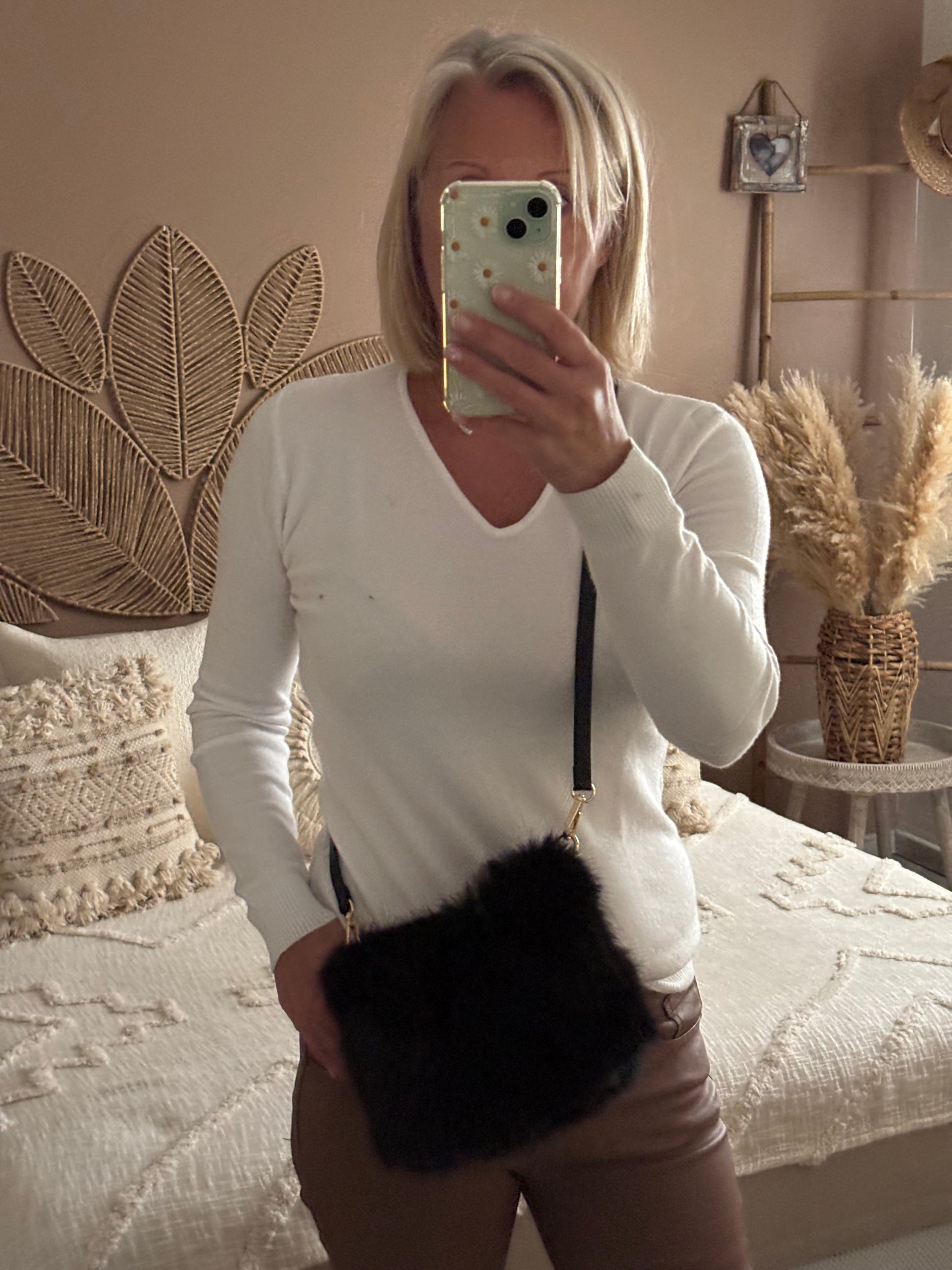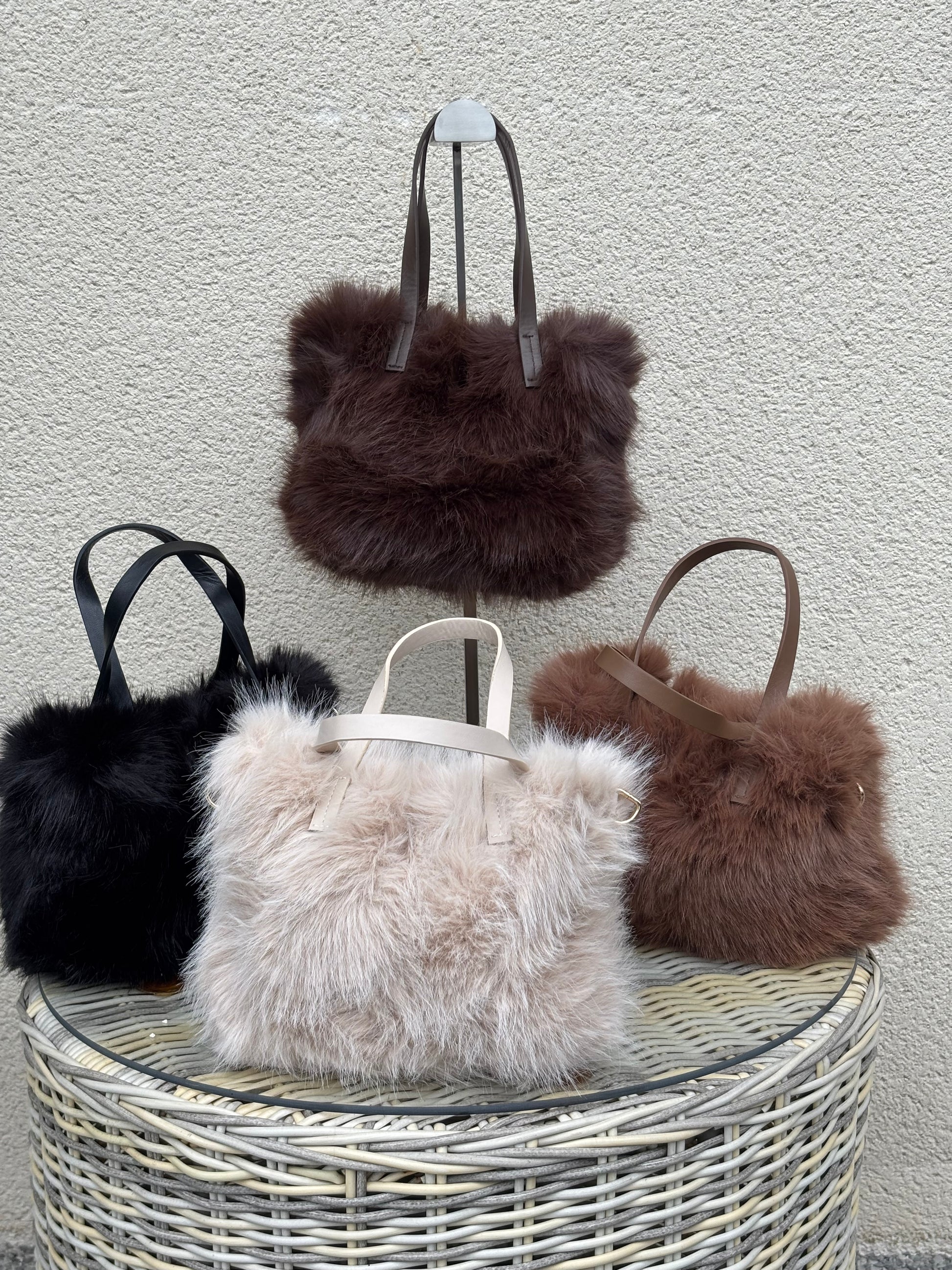 Petit sac poilu couleur noir. Se porte à la main ou en bandoulière. Existe en plusieurs coloris.