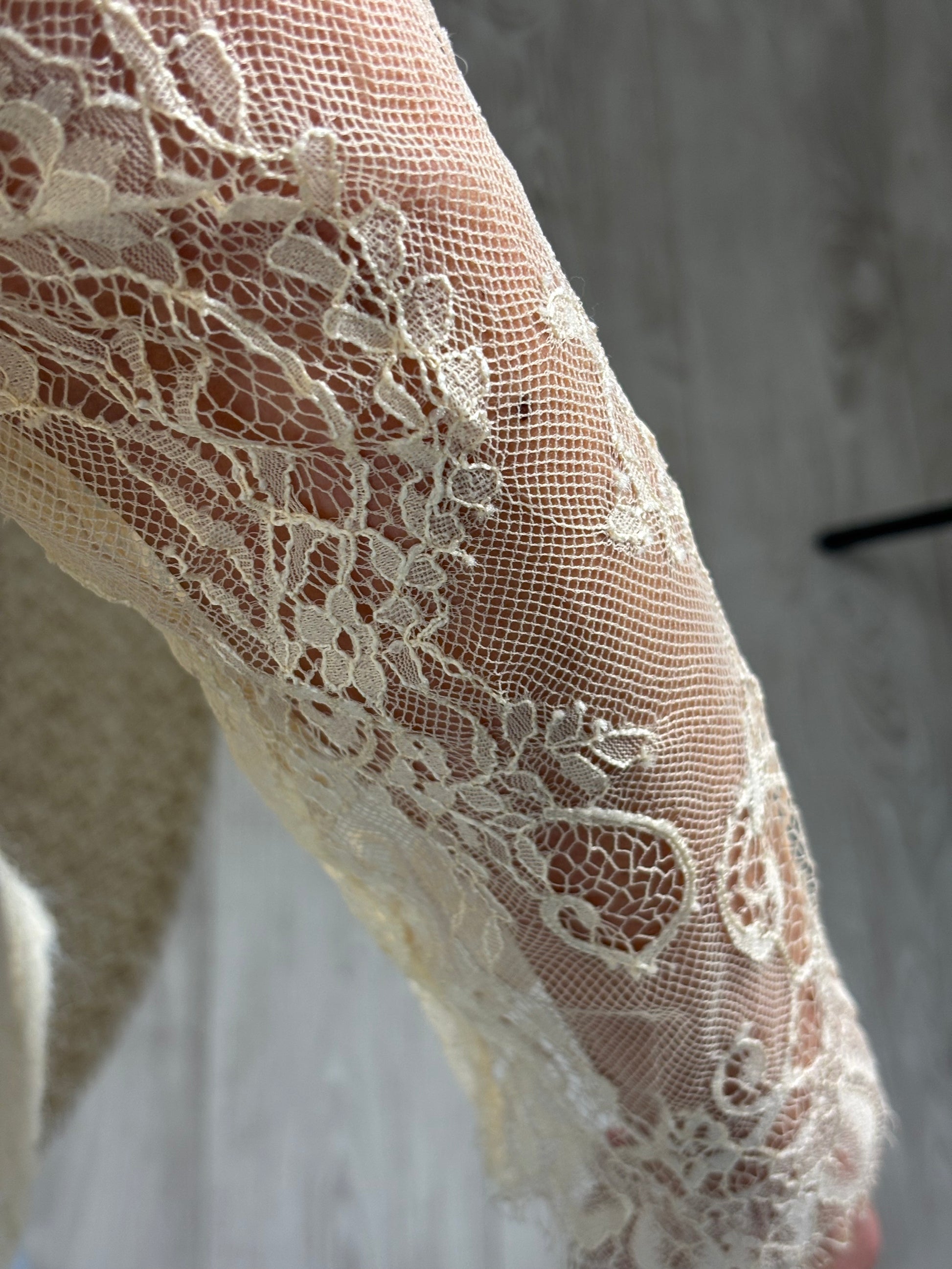Sous top en dentelle beige, col montant, manches longues. Existe en plusieurs coloris. Taille unique convient du 36 au 42.