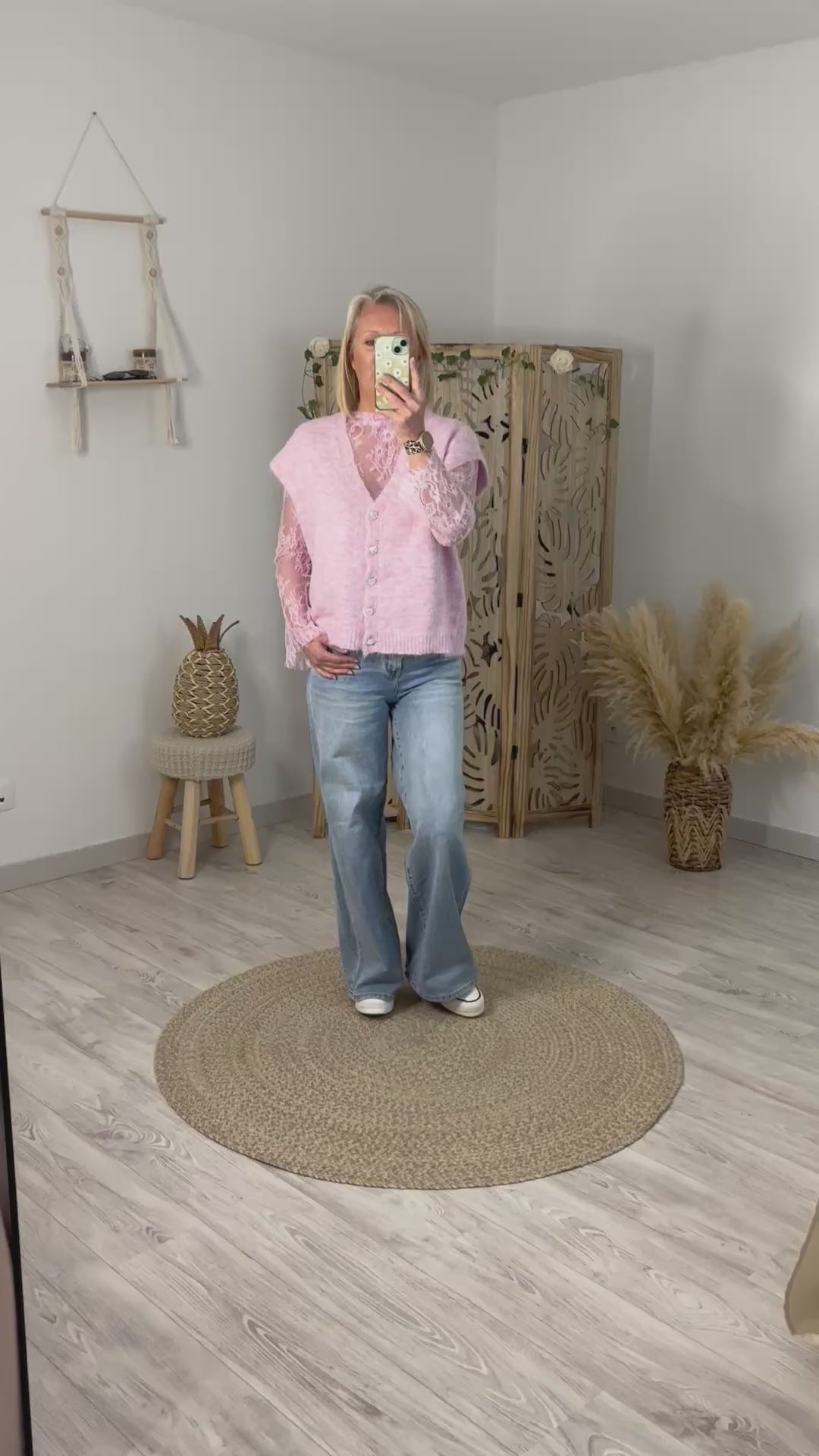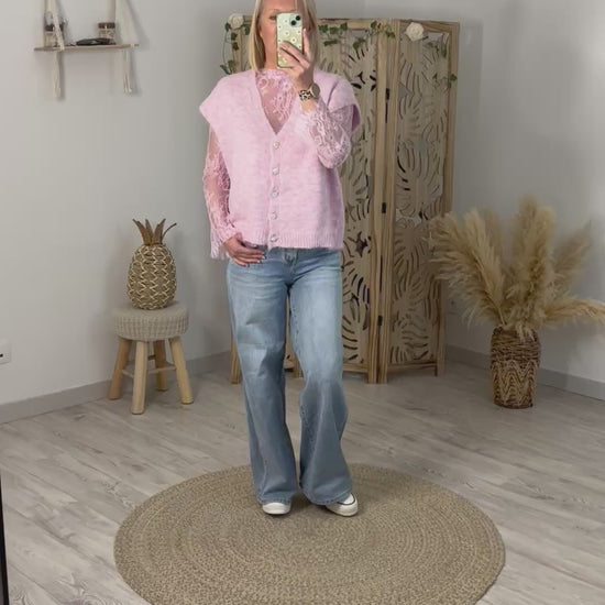 Sous top en dentelle rose col montant, manches longues. Existe en plusieurs coloris. Taille unique convient du 36 au 42.
